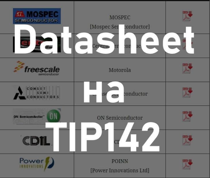 В таблицы приведены все Datasheet на транзистор TIP142 от каждого производителя. Для того чтобы скачать PDF файл себе или просмотреть его, кликните на соответствующею иконку.