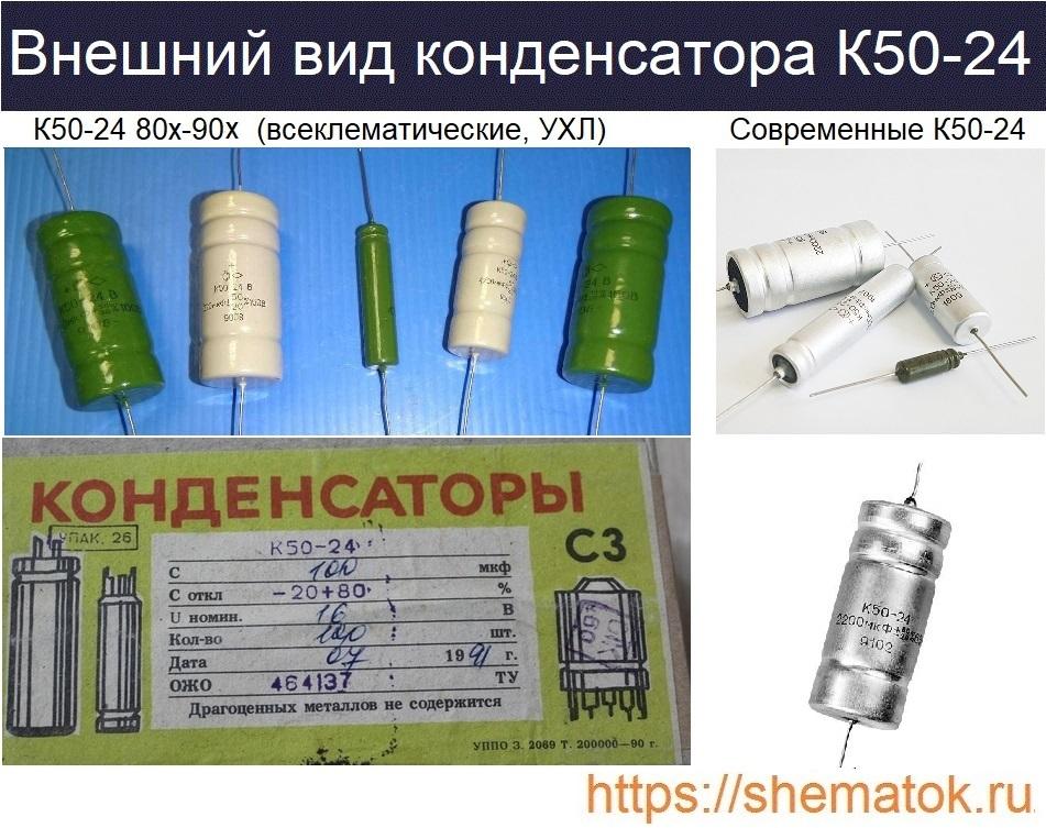В электролитических конденсаторах серии К50-24 не стоит искать содержание драгметаллов. Но они интересны для скупщиков радиолома как изделия, почти полностью состоящие из технического алюминия. При этом, по данным некоторых справочников, в них имеется небольшое количество серебра, но и его ничтожно мало — до 0,0003 гр. в 1 шт.Внешний вид К50-24