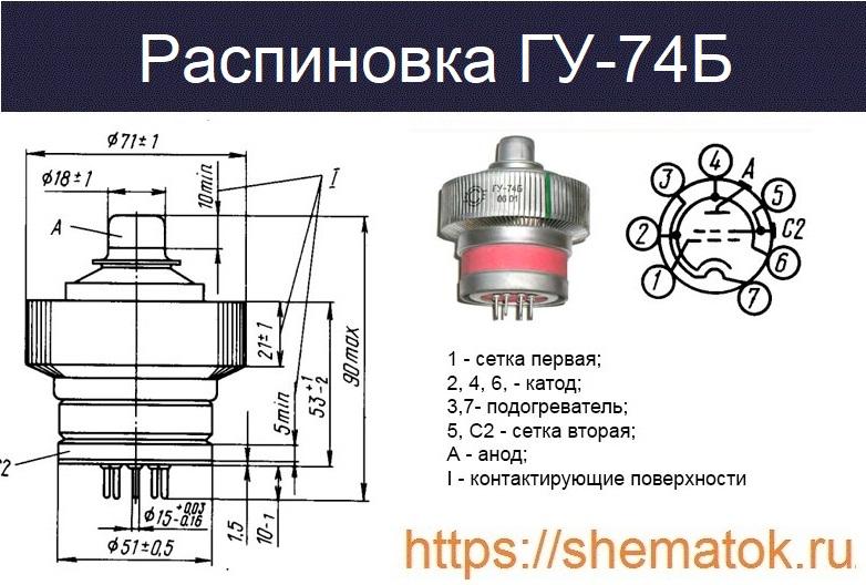 По своим техническим характеристикам, лампа ГУ-74Б представляет собой генераторный тетрод – электровакуумный прибор (ЭВП). Широко использовался в советское время (начиная с 70xx) в конструкциях однополосных радиопередающих устройств (РПУ). В настоящее время, обновлённая версия лампы, выпускается для применения в выходных каскадах широкополосных РПУ на частотах до 60 МГц и уровнем комбинационных составляющих третьего и пятого порядков не менее 36…40 дБ.