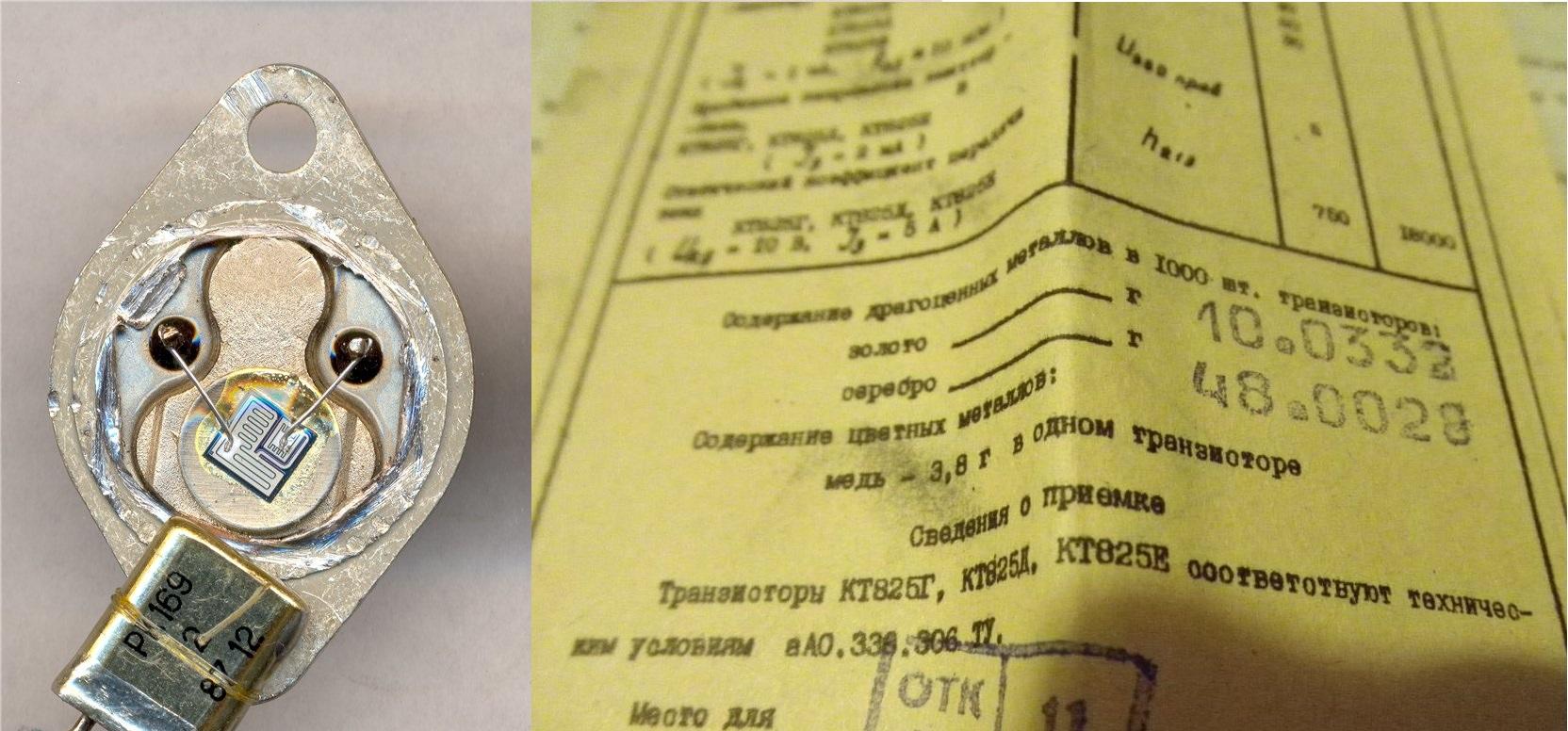 Содержание драгоценных металлов в КТ825Г