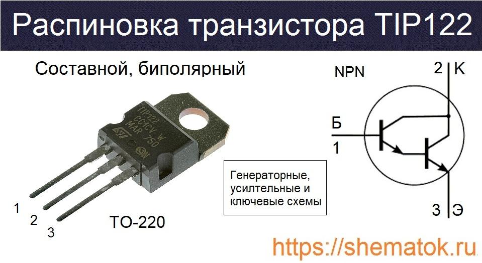 Благодаря своим характеристикам транзистор tip122 возможно использовать в различных преобразователях напряжения, источниках питания, усилителях постоянного тока и коммутационных системах. Это мощный, кремниевый, составной биполярный n-p-n транзистор, изготовленный по эпитаксиально-планарной технологии с применяем схемы Дарлингтона. В связи с этим, он имеет высокий коэффициент усиления в сочетании с очень низким напряжением насыщения.